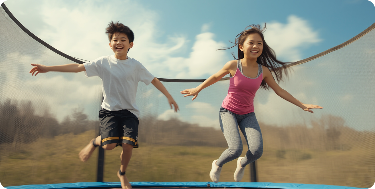 • ปลอดภัยและสนุก ไม่บาดเจ็บ: ใช้ Trampoline ที่มีความยืดหยุ่นสูง ช่วยลดแรงกระแทกบริเวณข้อต่อ ทำให้การกระโดดสนุก ปลอดภัย และช่วยเสริมสร้างกล้ามเนื้อและโครงสร้างร่างกายให้แข็งแรง