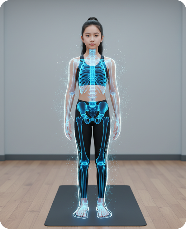 เทคโนโลยีวิเคราะห์ท่าทางด้วย AI และกล้อง 3 มิติที่ไม่ใช้รังสี ซึ่งช่วยตรวจหาความผิดปกติของโครงสร้างร่างกาย และข้อต่อกระดูกที่ขัดขวางการเพิ่มความสูงของเด็กได้อย่างแม่นยำ ทำให้ได้ข้อมูลเพื่อวางแผนการปรับท่าทางและการออกกำลังกาย เฉพาะบุคคล เพื่อให้ลูกเติบโตได้เต็มศักยภาพความสูง