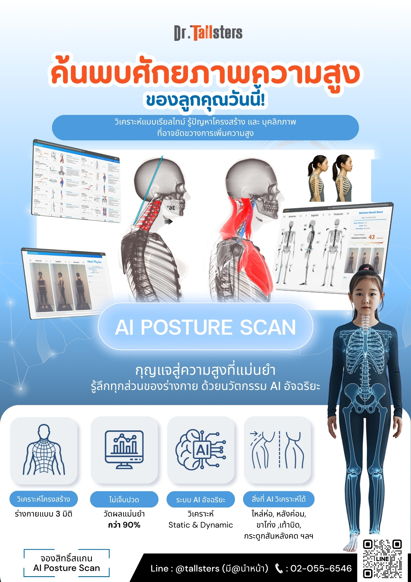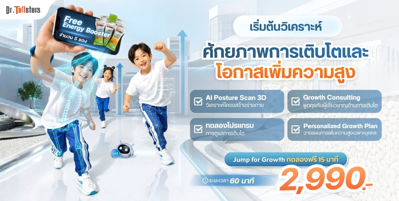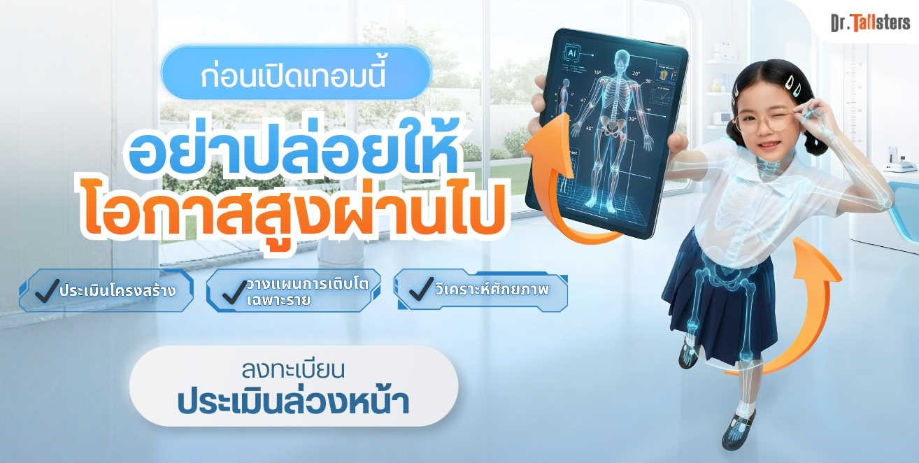 ช่วงเวลาปิดเทอมคือ “นาทีทอง” ของการเจริญเติบโต ทาง สถาบัน Dr.Tallsters ขอมอบโอกาสในการปลดล็อกศักยภาพความสูงของลูกรัก ด้วยเทคโนโลยี AI Posture Scan 3D และการดูแลอย่างใกล้ชิดจาก ทีมผู้เชี่ยวชาญ เพื่อวางแผนรากฐานอนาคตที่สูงกว่าอย่างปลอดภัยและตรงจุด